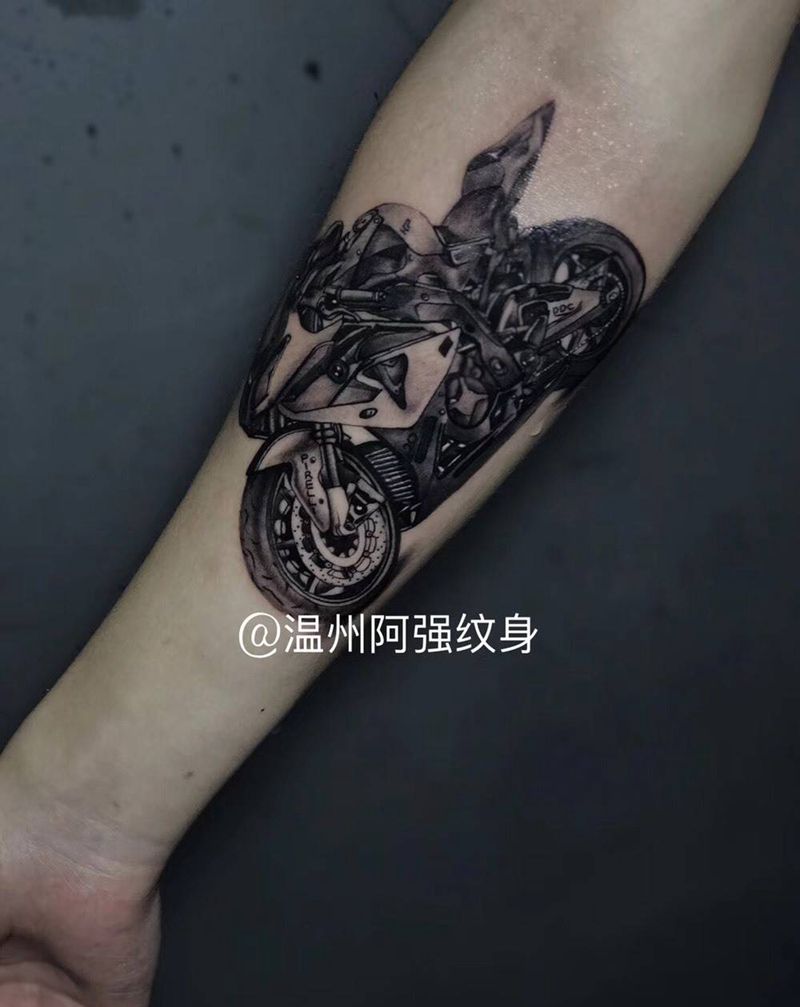 机车纹身图片_原创写实手稿成品手臂温州纹身图案
