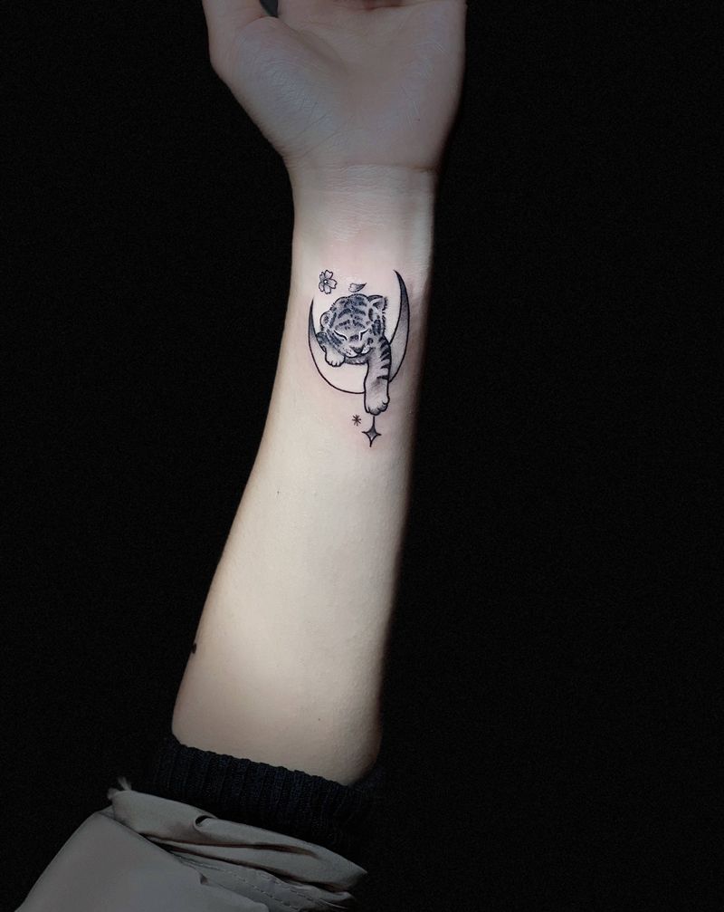 老虎纹身纹身图片_手臂新传统点刺纹身图案
