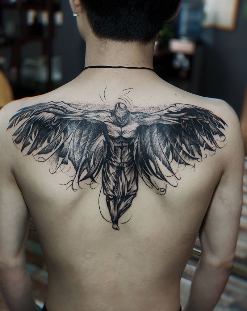 当前位置: 首页 >浙江省温州市纹身店-温州阿强纹身纹身图案>六翼天使纹身纹身图片_背部几何点刺纹身图案