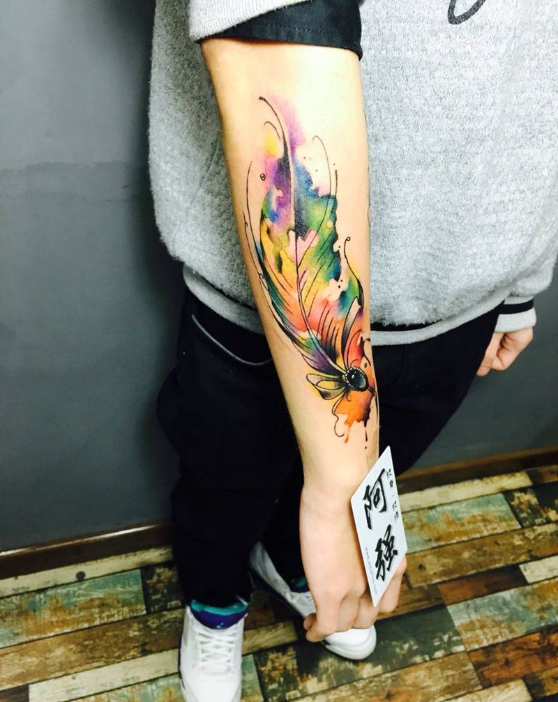 水墨羽毛纹身图片