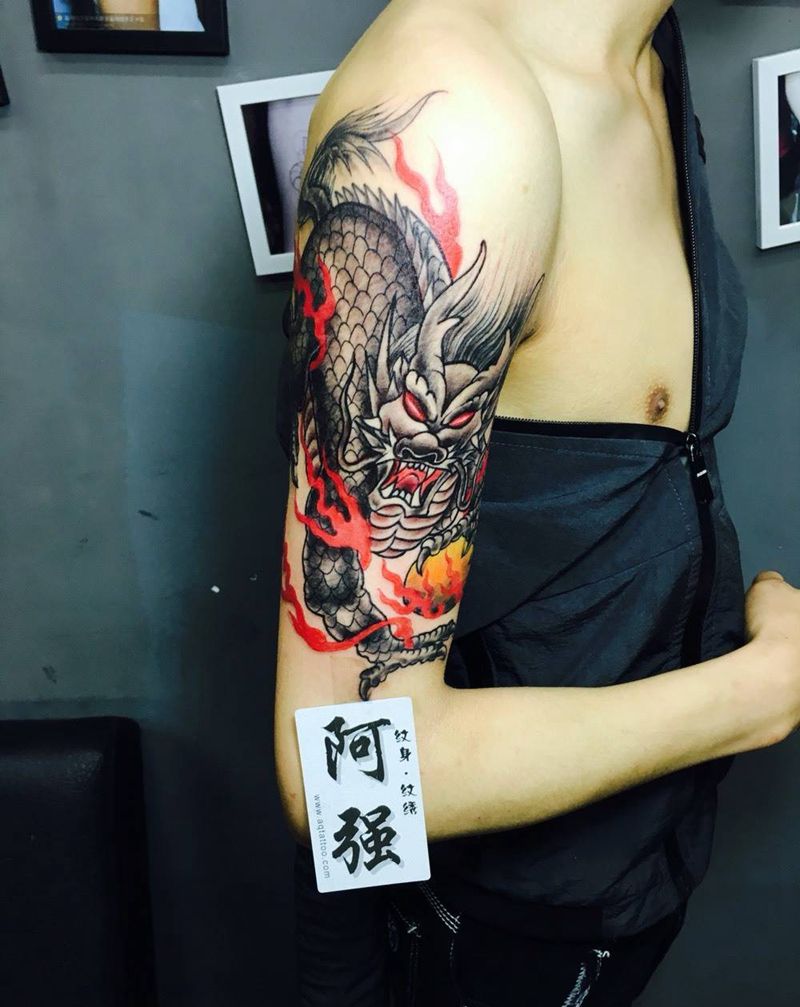 • T网红王老大花腿龙纹身图片_腿部新传统纹身图案