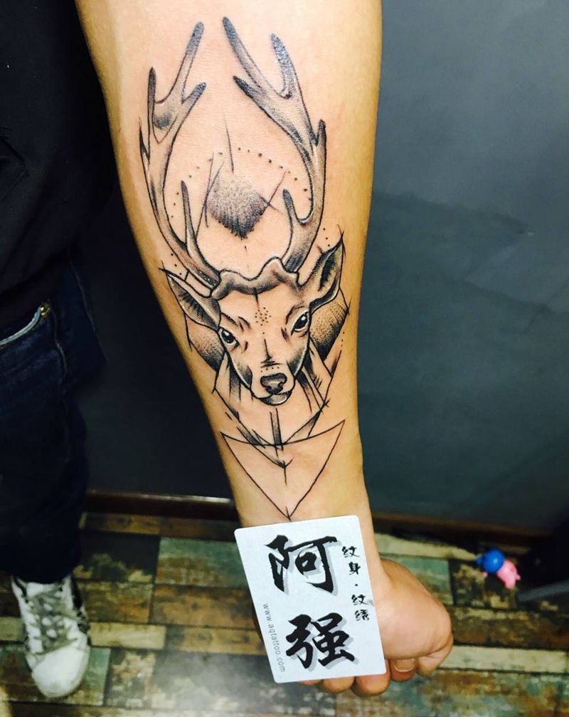 点刺鹿头纹身图片