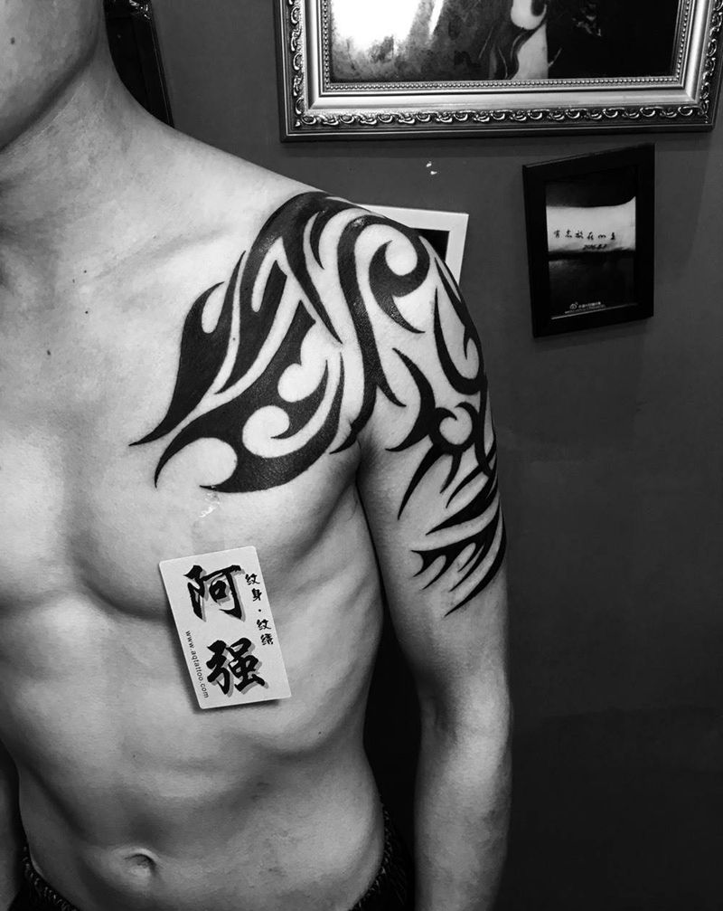 • 纹身吧推荐的披肩图腾半胛纹身图案作品展示