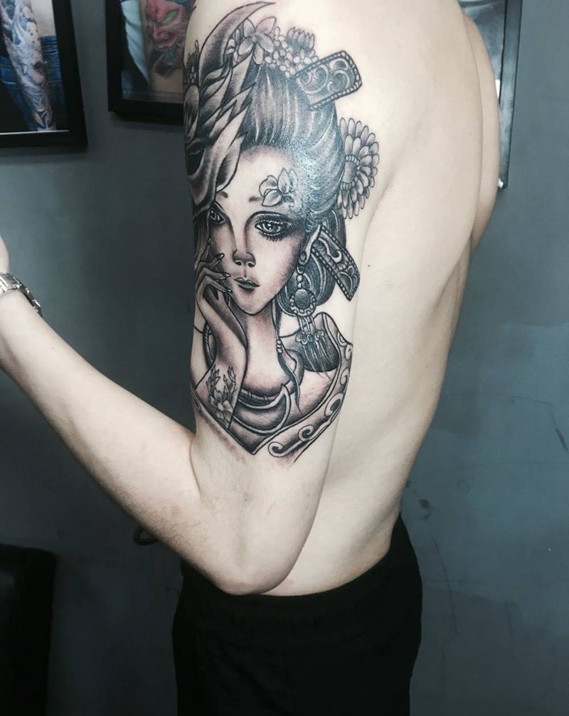 当前位置: 首页 >浙江省温州市纹身店-温州阿强纹身纹身图案>艺妓纹身图片