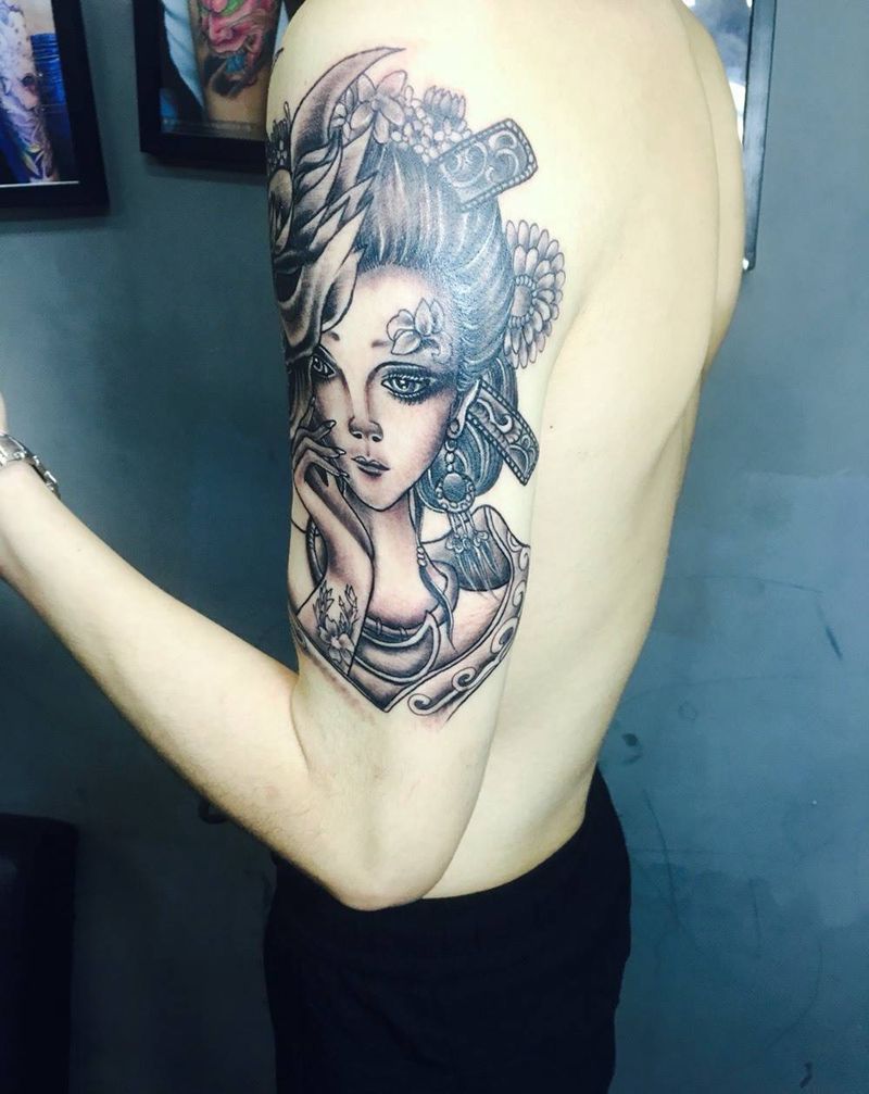 当前位置: 首页 >浙江省温州市纹身店-温州阿强纹身纹身图案>艺妓纹身图片