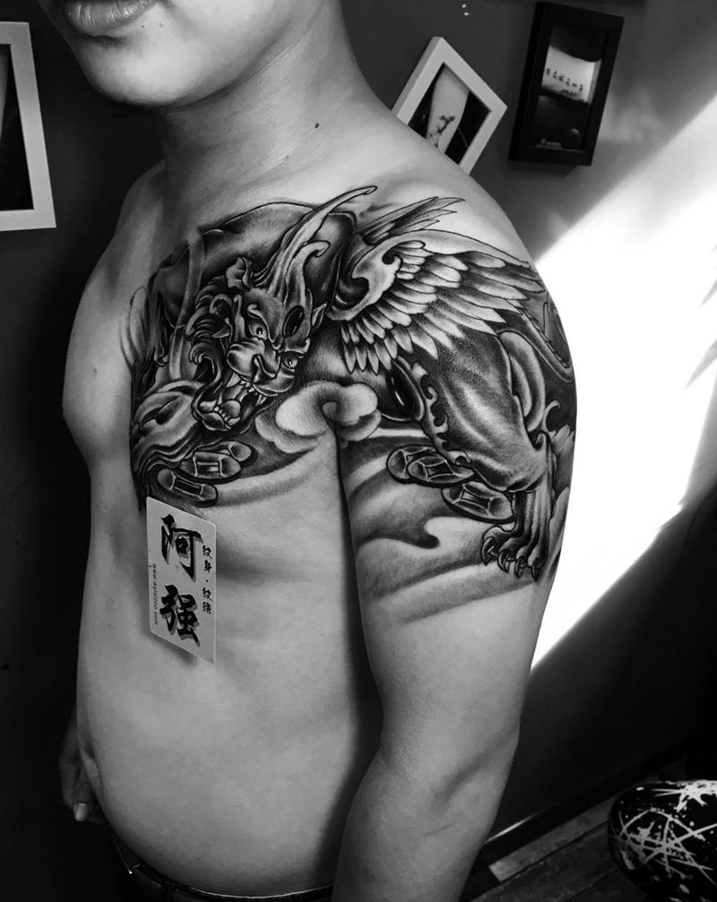 • 纹身吧推荐的披肩图腾半胛纹身图案作品展示