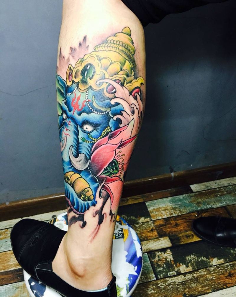 当前位置: 首页 >浙江省温州市纹身店-温州阿强纹身纹身图案>彩色象神纹身图片