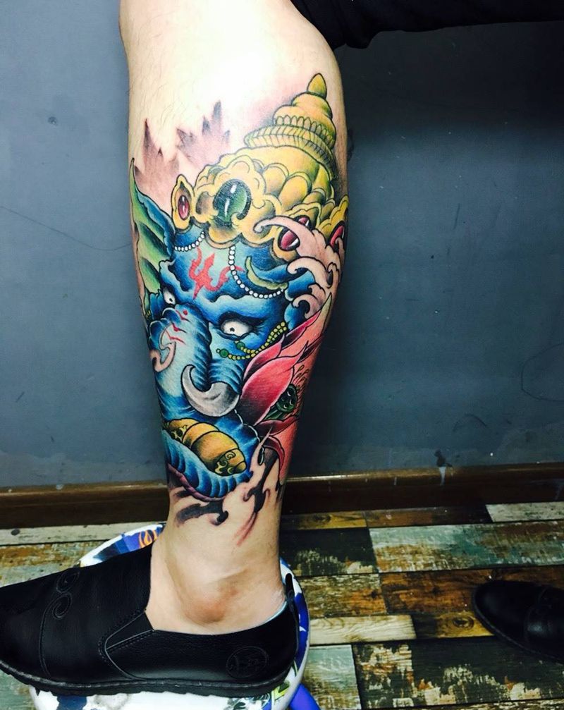 当前位置: 首页 >浙江省温州市纹身店-温州阿强纹身纹身图案>彩色象神纹身图片