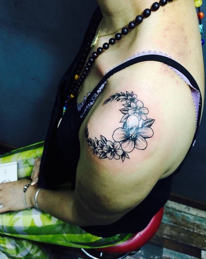 月亮花遮盖疤痕作品纹身图片