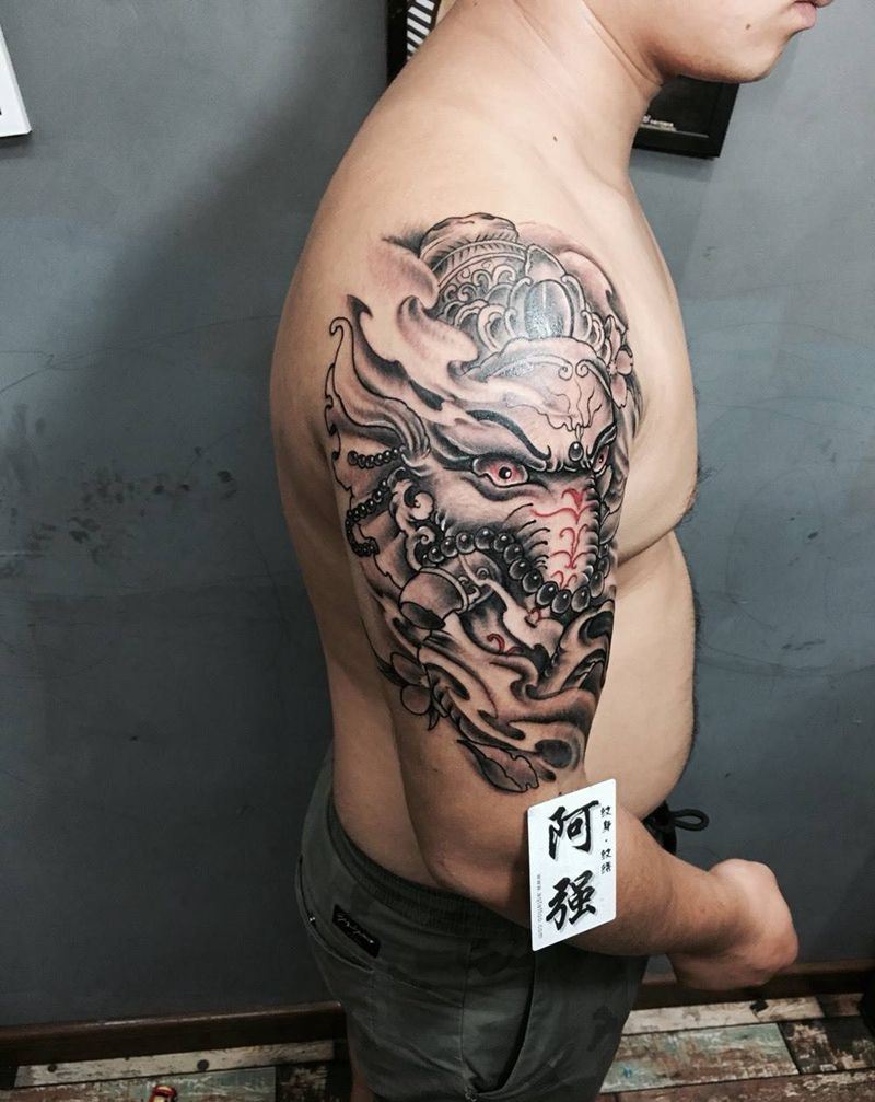 当前位置: 首页 >浙江省温州市纹身店-温州阿强纹身纹身图案>大臂象神纹身图片