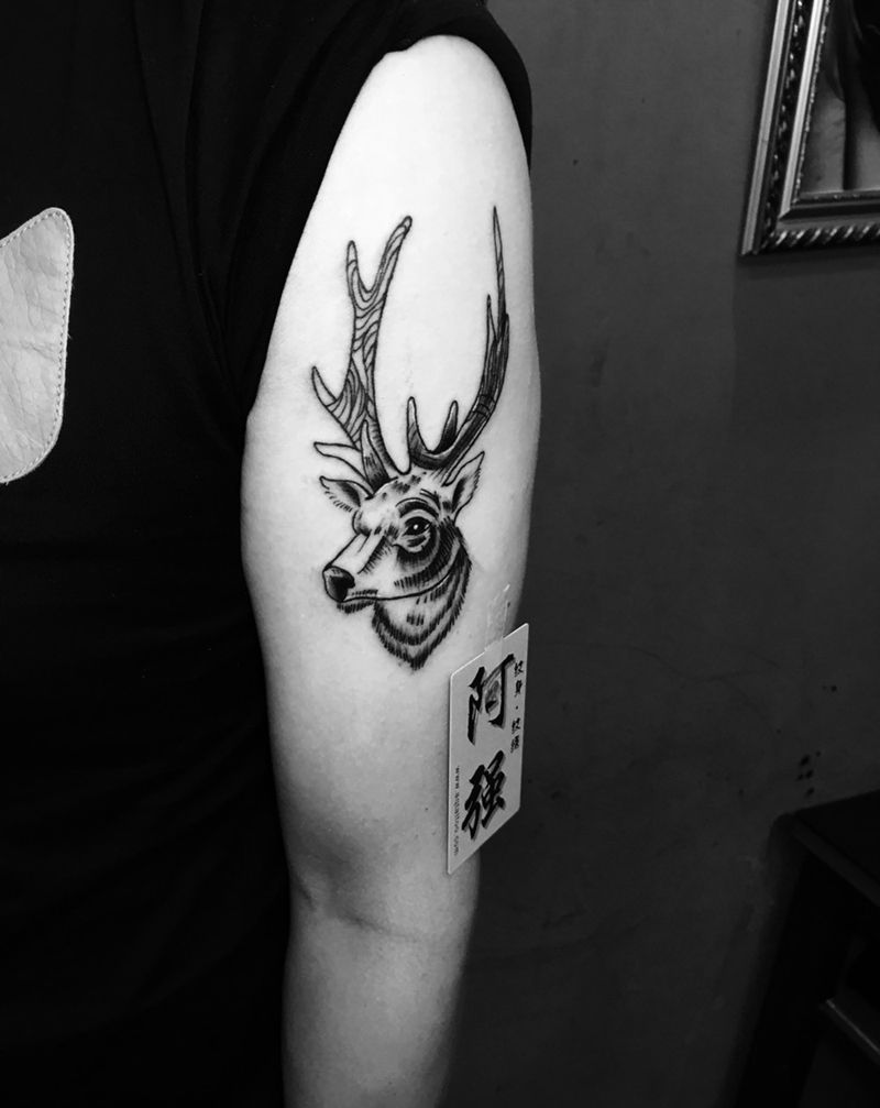 当前位置: 首页 >浙江省温州市纹身店-温州阿强纹身纹身图案>鹿纹身图片_成品手臂传统动物几何纹身图案