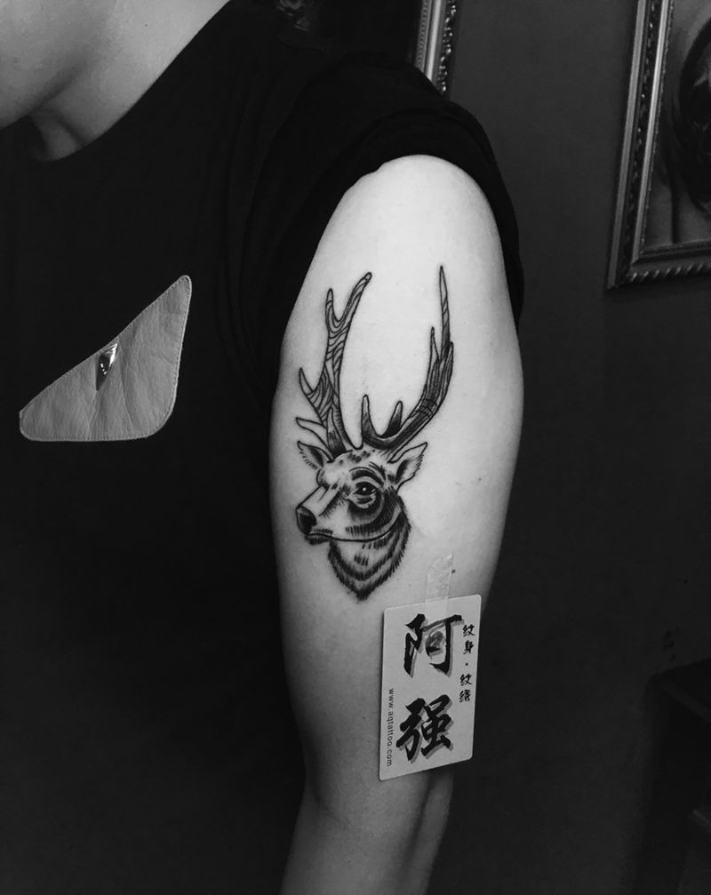 当前位置: 首页 >浙江省温州市纹身店-温州阿强纹身纹身图案>鹿纹身图片_成品手臂传统动物几何纹身图案