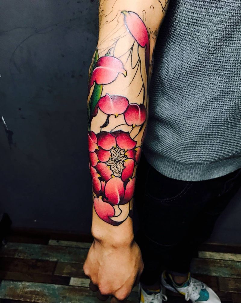 一组15张莲花纹身手