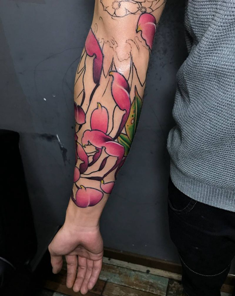 彩色花臂纹身图片_成品手臂传统花臂纹身图案