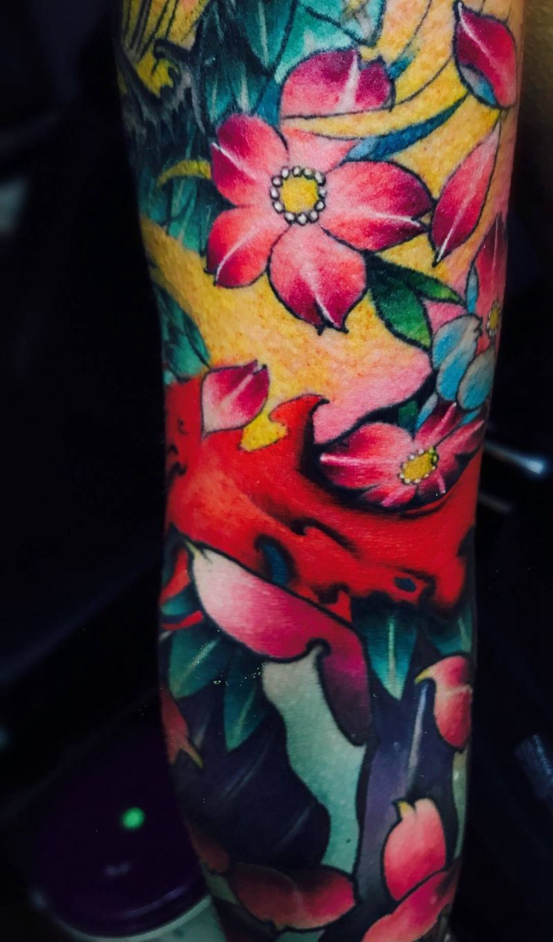 当前位置: 首页 >浙江省温州市纹身店-温州阿强纹身纹身图案>花臂纹身图片_成品手臂传统动物花臂纹身图案