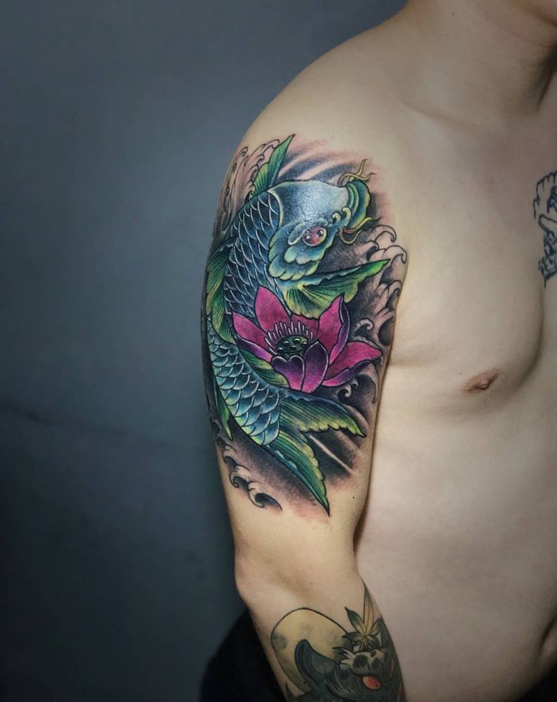 • T网红王老大花腿龙纹身图片_腿部新传统纹身图案
