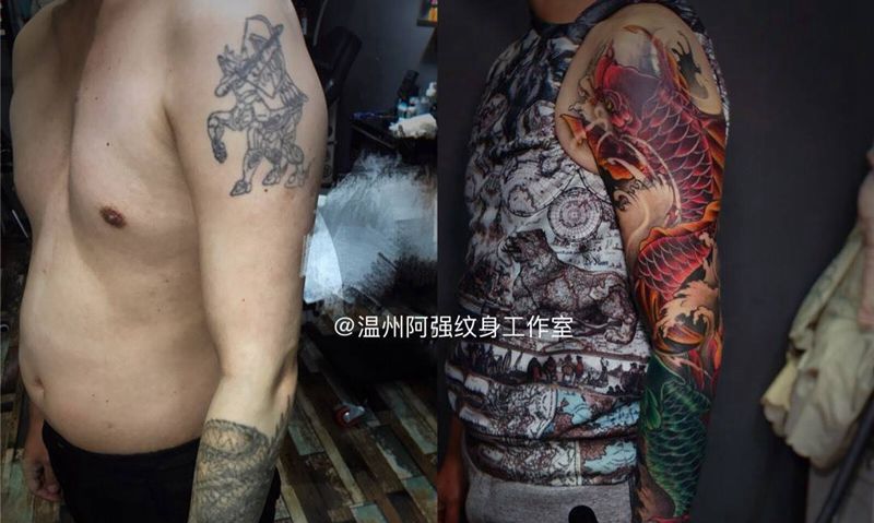 当前位置: 首页 >浙江省温州市纹身店-温州阿强纹身纹身图案>遮盖鲤鱼花臂纹身图片