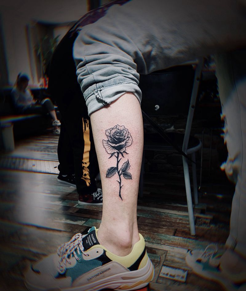玫瑰花纹身图片_腿部纹身图案