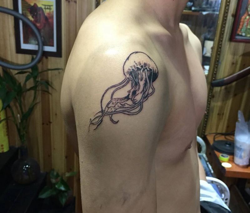 当前位置: 首页 >浙江省宁波市纹身店-无风格纹身工作室纹身图案>水母纹身图片_手部纹身图案