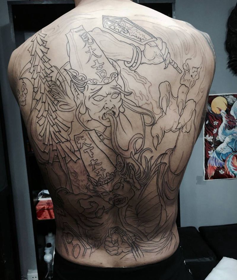 当前位置: 首页 >浙江省宁波市纹身店-无风格纹身工作室纹身图案>满背无常纹身图片_背部成品传统人物鬼神纹身图案