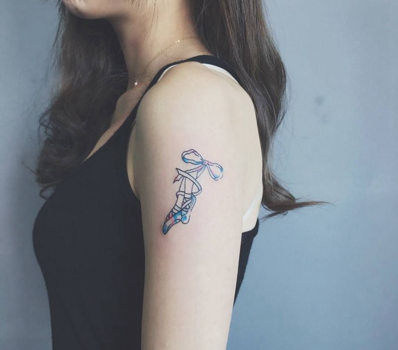当前位置: 首页 >浙江省宁波市纹身店-无风格纹身工作室纹身图案>跳舞鞋纹身图片_成品手臂清新静物纹身图案