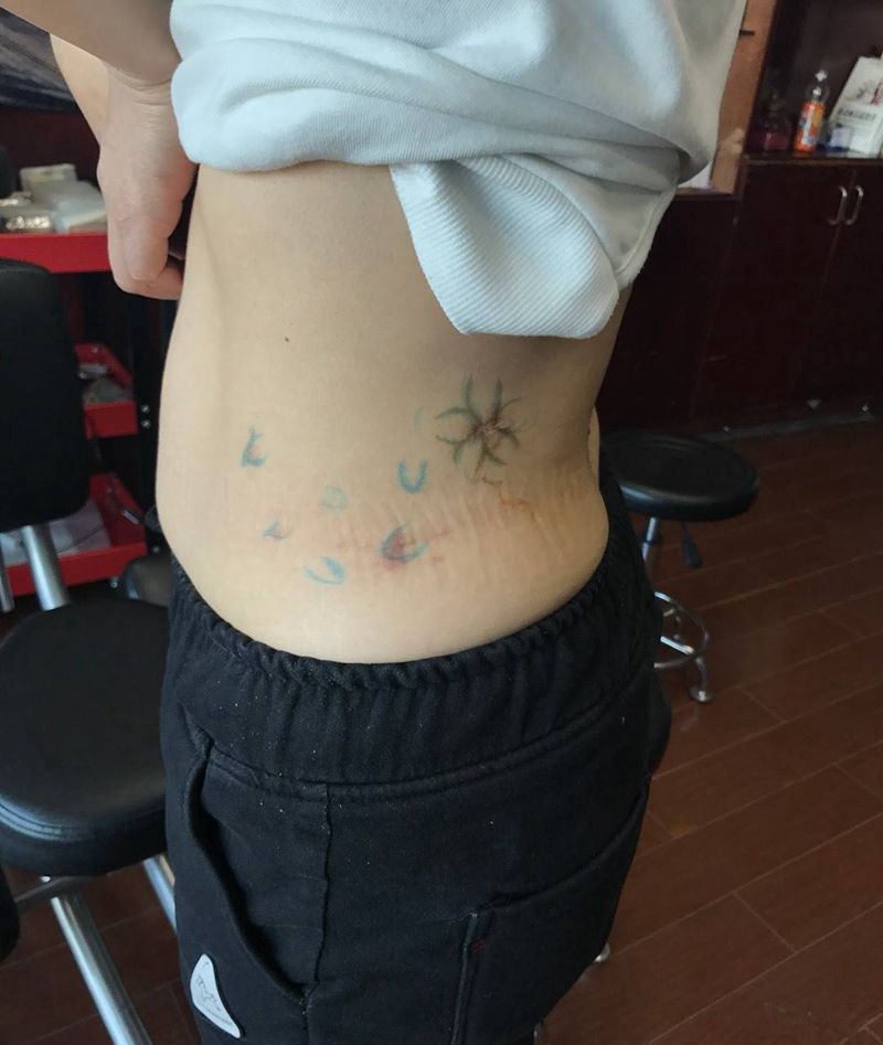 当前位置: 首页 >浙江省宁波市纹身店-无风格纹身工作室纹身图案>盖疤纹身图片_成品腰部清新植物纹身图案