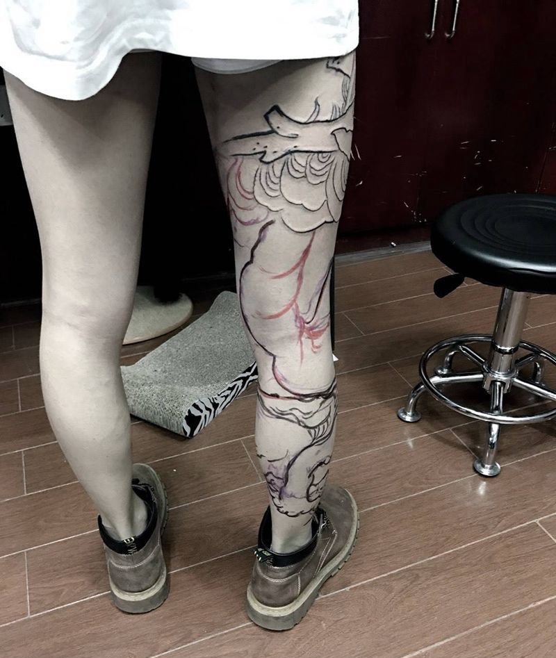 • T网红王老大花腿龙纹身图片_腿部新传统纹身图案