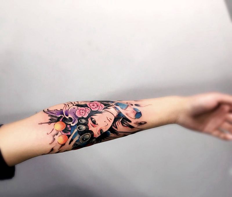 当前位置: 首页 >浙江省宁波市纹身店-无风格纹身工作室纹身图案>花旦纹身图片_成品手部传统国画肖像人物纹身图案