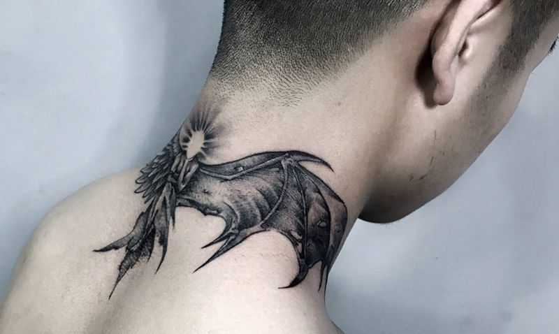 当前位置: 首页 >浙江省宁波市纹身店-无风格纹身工作室纹身图案>天使纹身图片_成品颈部传统鬼神纹身图案