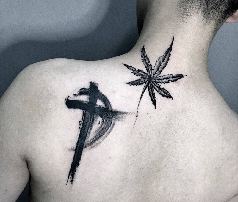 当前位置: 首页 >浙江省宁波市纹身店-无风格纹身工作室纹身图案>大麻纹身图片_成品肩部清新植物纹身图案