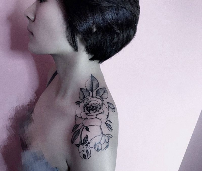 当前位置: 首页 >浙江省宁波市纹身店-无风格纹身工作室纹身图案>花纹身图片_成品肩部清新植物纹身图案