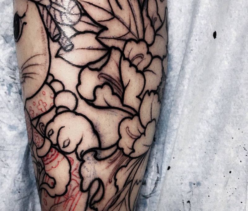 当前位置: 首页 >浙江省宁波市纹身店-无风格纹身工作室纹身图案>线纹身图片_成品腿部传统动物人物鬼神纹身图案