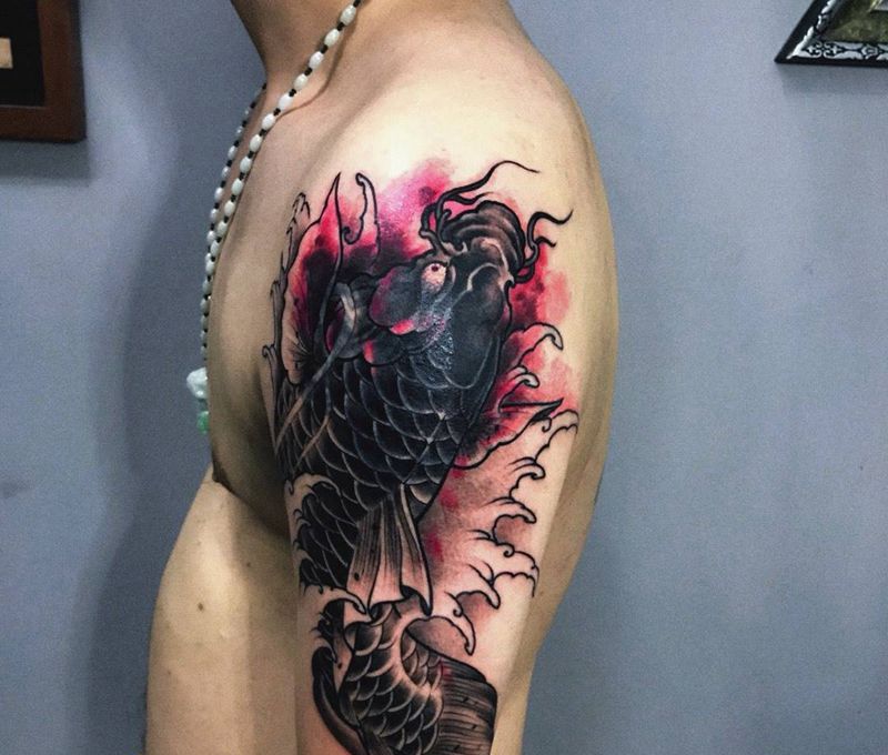 鲤鱼遮盖纹身图片_成品手臂传统纹身图案