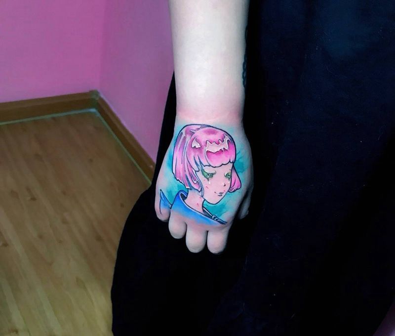 当前位置: 首页 >浙江省宁波市纹身店-无风格纹身工作室纹身图案>暗黑小萝莉纹身图片_成品手部清新欧美纹身图案