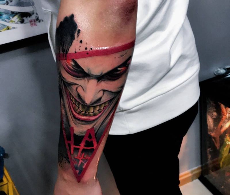 当前位置: 首页 >浙江省宁波市纹身店-无风格纹身工作室纹身图案>遮盖作品小丑纹身图片_成品手部欧美纹身图案