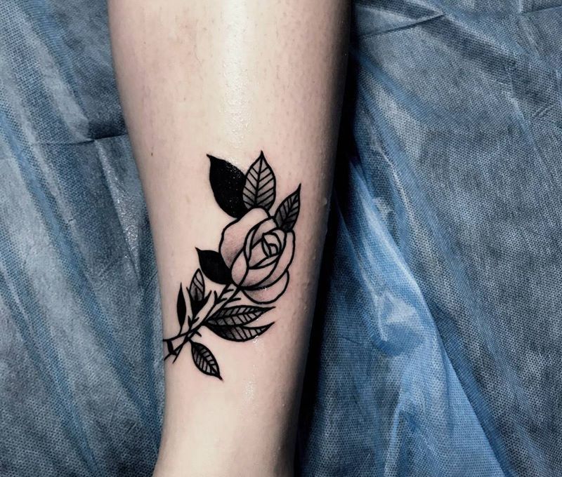 玫瑰花纹身图片_成品腿部欧美纹身图案