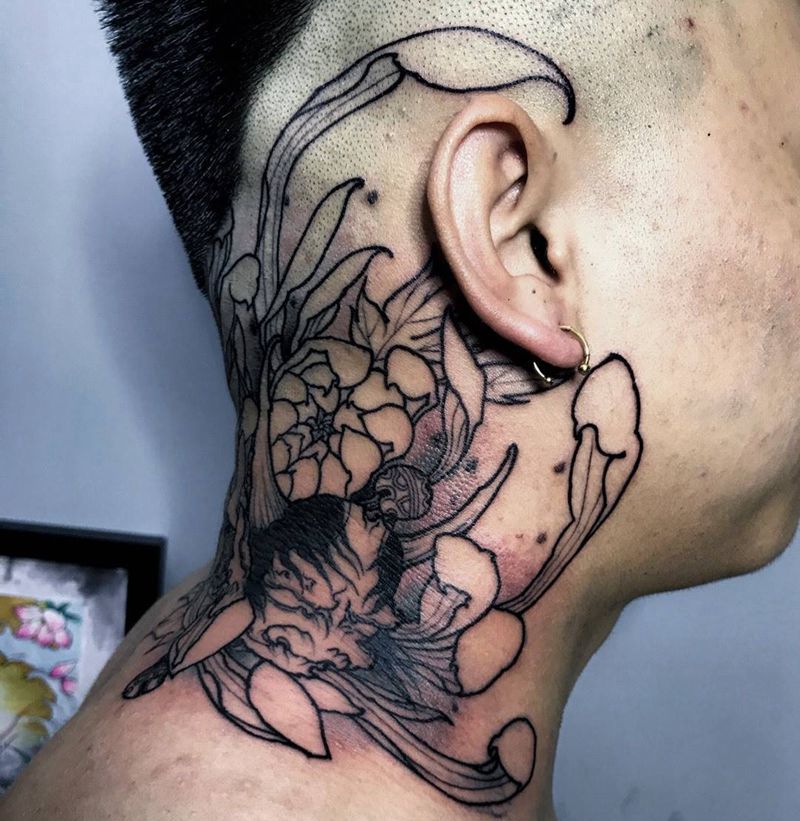 当前位置: 首页 >浙江省宁波市纹身店-无风格纹身工作室纹身图案>爆脖子纹身图片_成品颈部传统纹身图案
