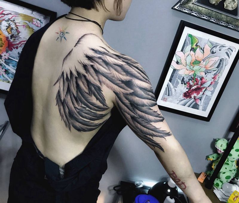 • 纹身吧推荐的披肩图腾半胛纹身图案作品展示