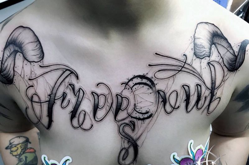 当前位置: 首页 >浙江省宁波市纹身店-无风格纹身工作室纹身图案>花体字纹身图片_成品胸部纹身图案
