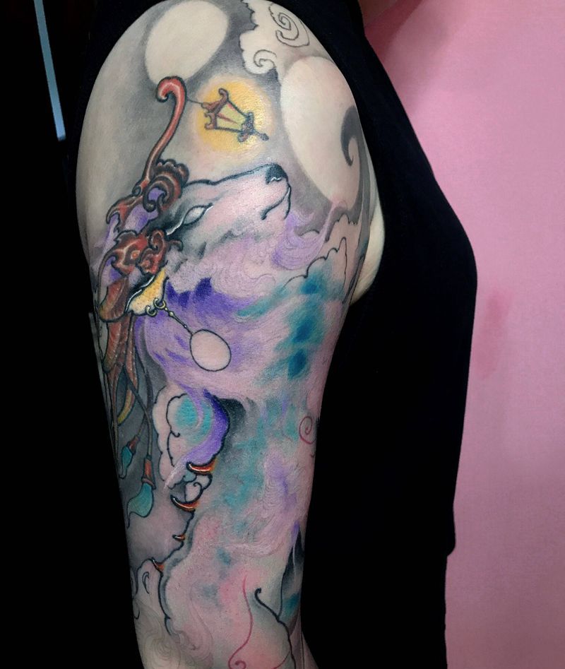 • 纹身吧推荐的披肩图腾半胛纹身图案作品展示