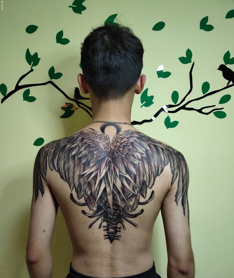 黑灰满背纹身图案