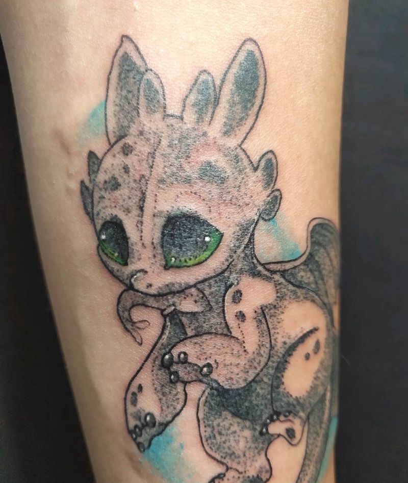 当前位置: 首页 >浙江省宁波市纹身店-念·刺青纹身图案>无牙仔纹身图片_手臂点刺水彩龙卡通纹身图案