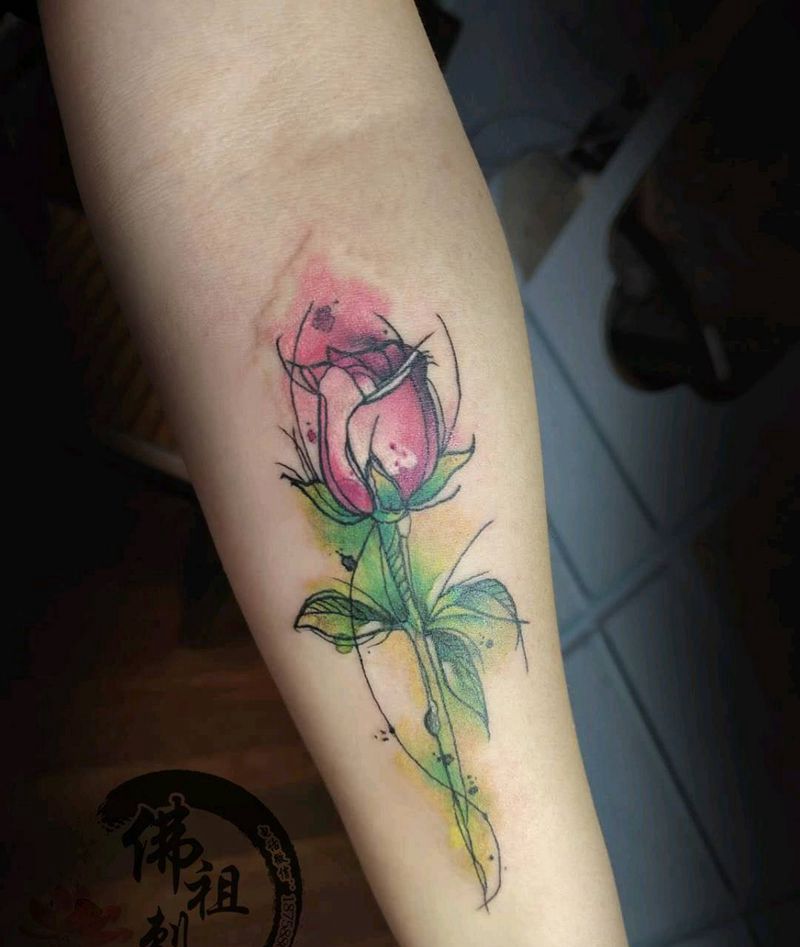 水彩玫瑰纹身图片_手臂腿部水彩水墨纹身图案