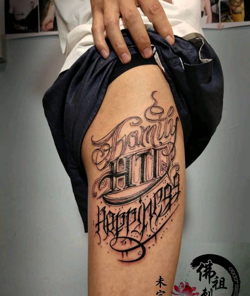 当前位置: 首页 >浙江省宁波市纹身店-宁波佛祖刺青纹身图案>花体字纹身图片_腿部手臂新传统欧美写实纹身图案