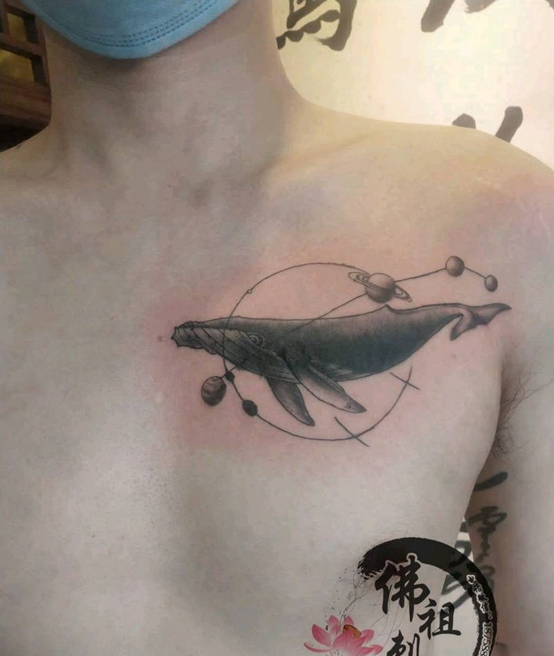 当前位置: 首页 >浙江省宁波市纹身店-宁波佛祖刺青纹身图案>专属私人定制鲸鱼遮盖老纹身纹身图片_胸部新传统纹身图案