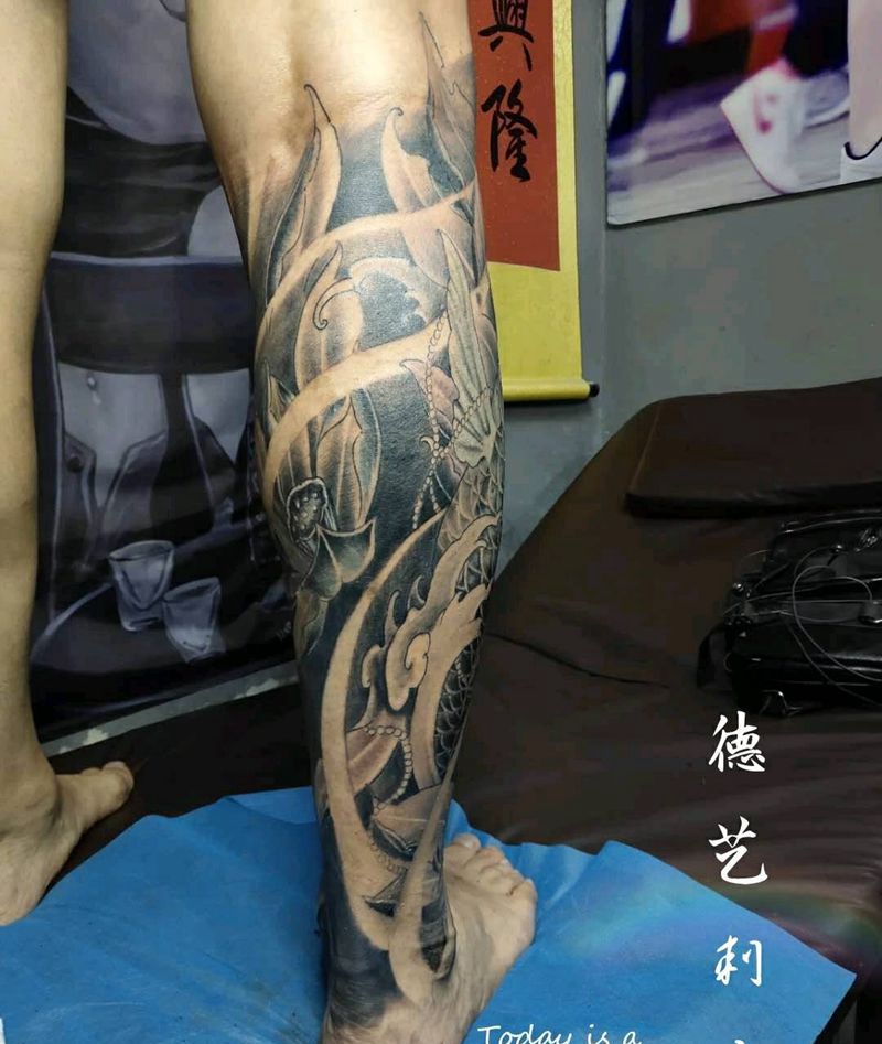 当前位置: 首页 >浙江省宁波市纹身店-德艺刺青纹身图案>鱼包小腿纹身图片_腿部新传统纹身图案