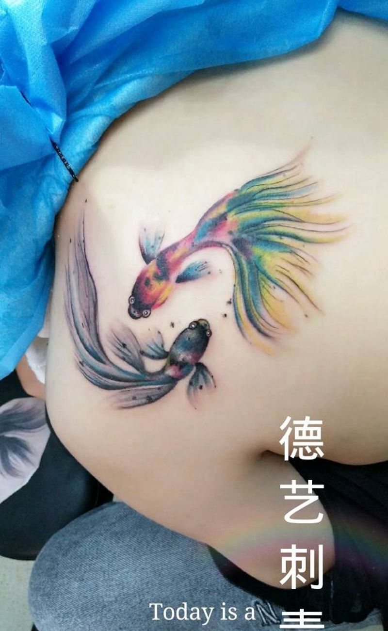 当前位置: 首页 >浙江省宁波市纹身店-德艺刺青纹身图案>鱼纹身图片_肩部水墨水彩鱼纹身图案