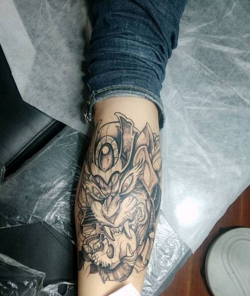 • T网红王老大花腿龙纹身图片_腿部新传统纹身图案