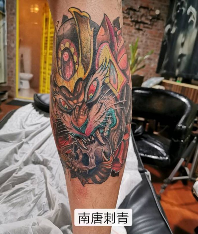 • T网红王老大花腿龙纹身图片_腿部新传统纹身图案