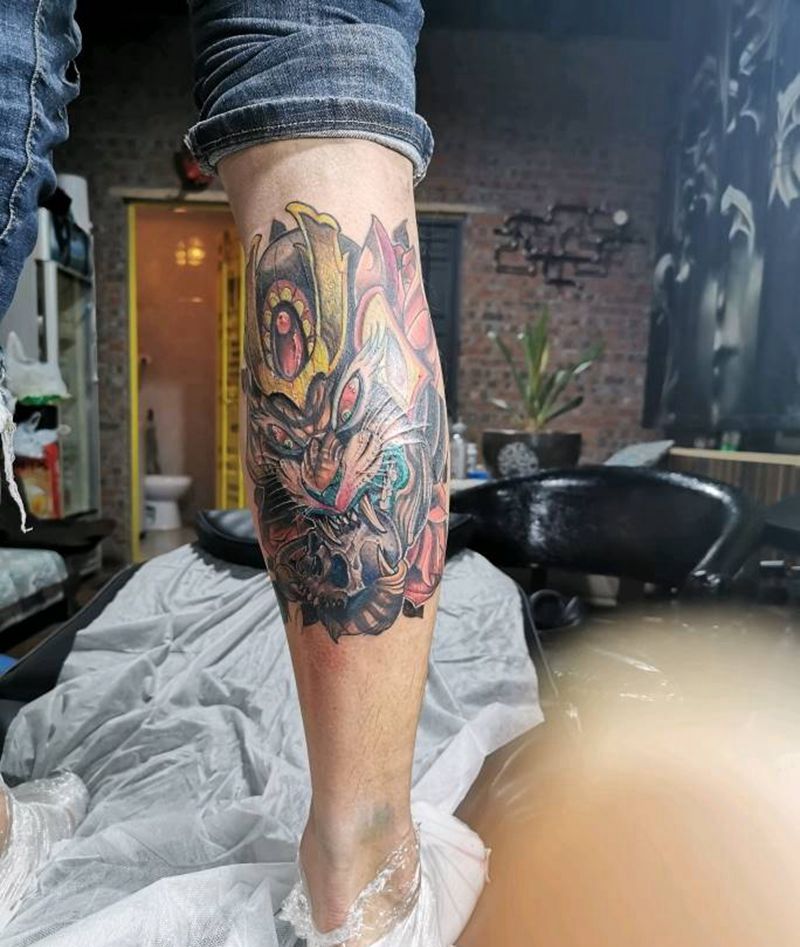 • T网红王老大花腿龙纹身图片_腿部新传统纹身图案